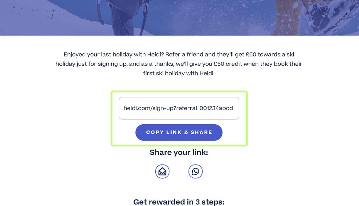 As a thank you for booking a Heidi holiday, we'll give your friend a £50 discount on their first trip too.